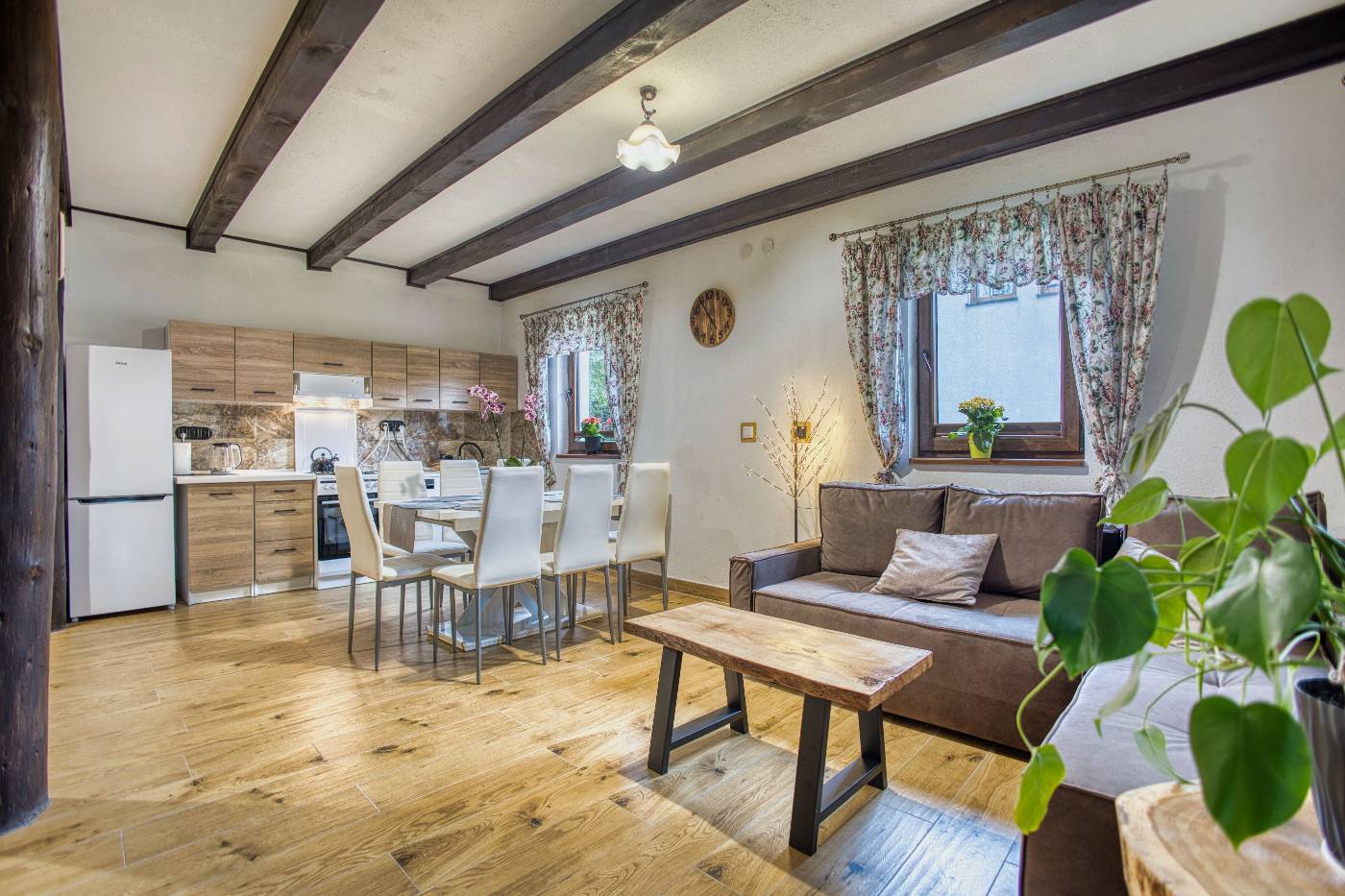 Zagroda u Drwala w Jabłonce to dwa przytulne domki całoroczne, które łącznie mogą pomieścić 6 osób. Każdy domek został urządzony w funkcjonalny sposób, tak aby zapewnić komfort i wygodę zarówno podczas krótkiego pobytu, jak i dłuższego urlopu. Domki posiadają w pełni wyposażone kuchnie, przestronne salony, wygodne sypialnie oraz łazienki.